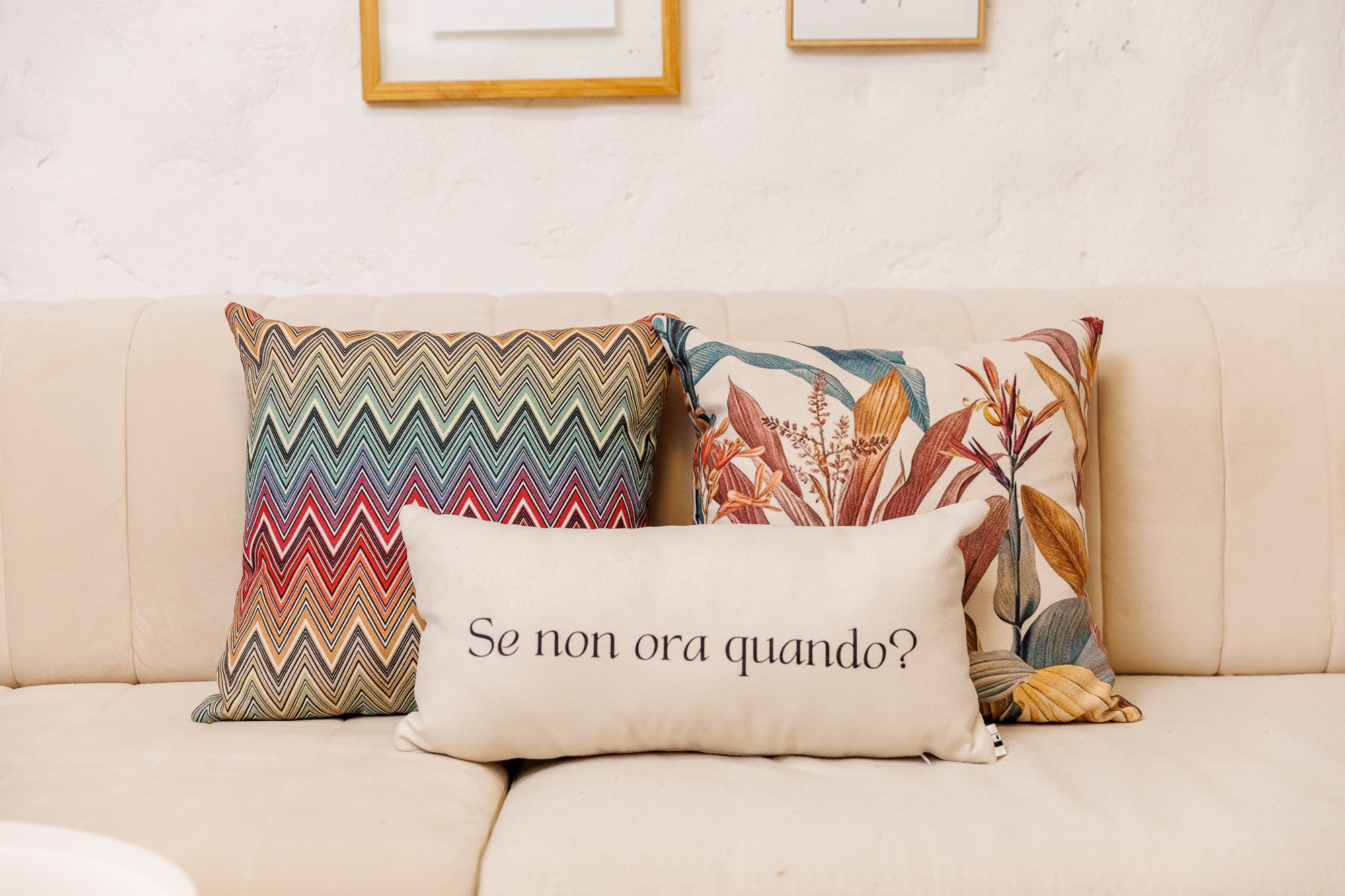 - Toque: Coloque uma almofada com cor ou textura, se quiser complemente com uma manta macia sobre o braço da poltrona ou sofá.